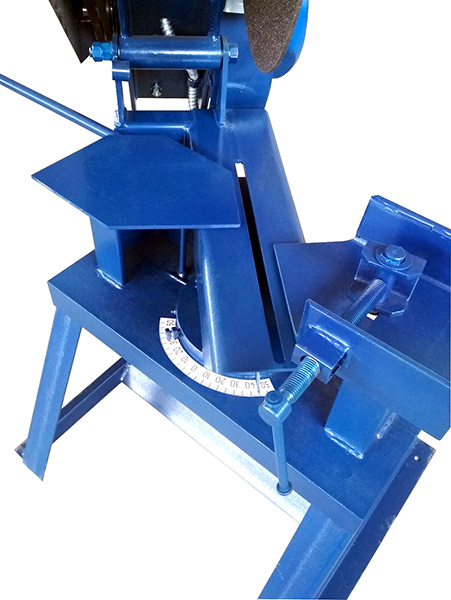 Поворотное устройство маятникового узла станка СОМ-400П позволяет резать заготовку под углом от -45 до +45 градусов. Поворотное отрезное устройство удобно при работе с длинными заготовками, т.к заготовку не нужно поворачивать при резке под углом.