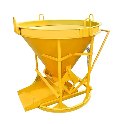 Бункер производства ООО «Завод строительного оборудования» конусообразной формы с верхней частью, обрамленной двумя поясами жесткости из швеллера, на которых установлены 4 строповочных петли. В нижней части установлен 2-х челюстной затвор рычажного типа, который обеспечивает раздачу бетона (в том числе с дозированной порционной выгрузкой).