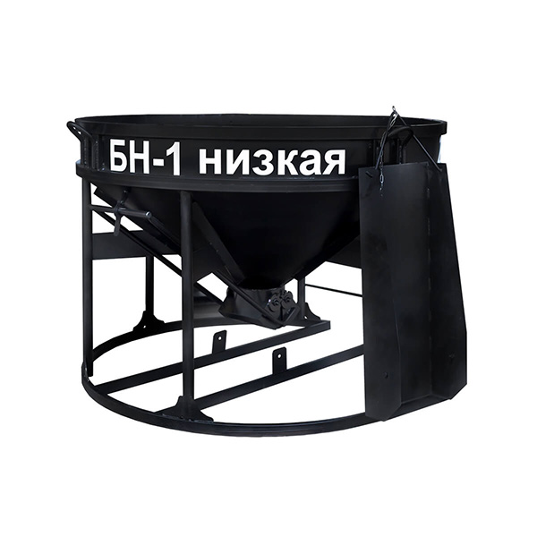 Бадья низкая вертикальная для бетона 1000 литров с лотком PST БН-1-L - транспортируется к месту бетонирования в вертикальном положении