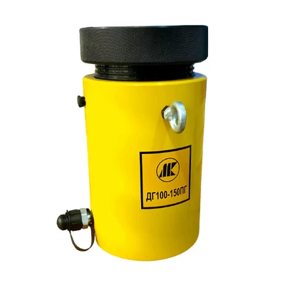 Домкрат одностороннего действия с фиксирующей гайкой Инстан ДГ600-300ПГ усилием 600 тонн, с ходом штока 300 мм предназначен для подъема, перемещения груза, а также для использования в качестве составной части (гидроцилиндра) прессового оборудования.