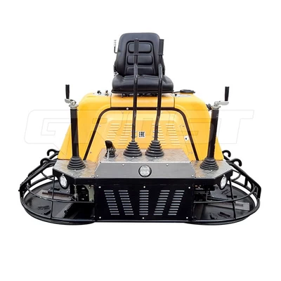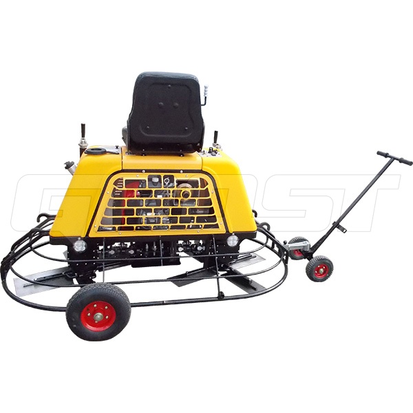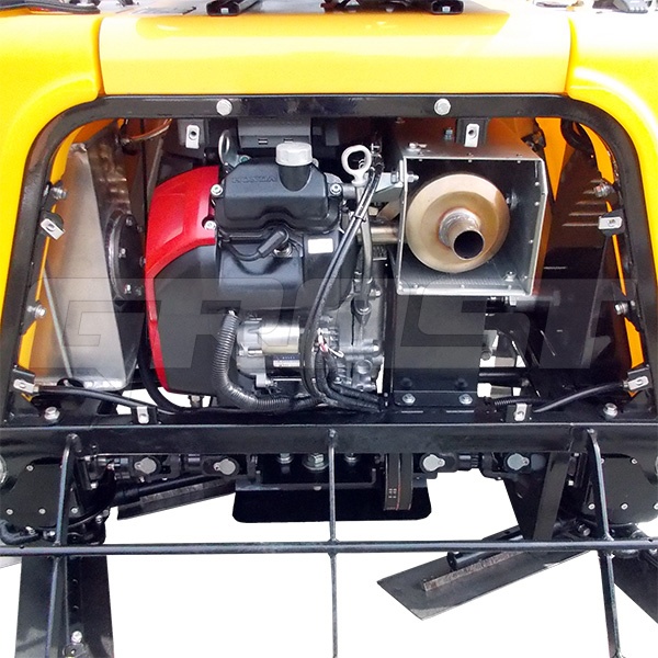 Машина укомплектована мощным бензиновым двигателем HONDA GX-690 мощностью 22.1 л.с. (16.5 кВт) с электрическим запуском. Машина оснащена механизмом регулировки угла наклона лопастей и применяется на всех этапах заглаживания и затирки. Затирочный диск съемный и крепится на лопастях при помощи кронштейнов.