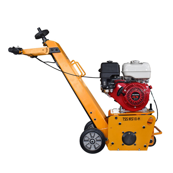 Бензиновая фрезеровальная машина TSS MS10-H (Ш) с оригинальным бензиновым двигателем HONDA, это универсальный вариант для широкого спектра строительных и дорожных работ, создания шероховатостей, зачистки и выравнивания поверхностей таких как: бетон, асфальт, стальная поверхность и другие. Рабочим элементом данного фрезера является барабан, на котором в шахматном порядке расположены металлические звездочки (ламели), снимающие поверхностный слой основания. Барабан с фрезами в комплект не входит, поставляется отдельно. Использование тех или иных видов "звездочек" зависит от типа обрабатываемой поверхности, а изменение глубины фрезерования достигается за счет регулирования положения барабана.