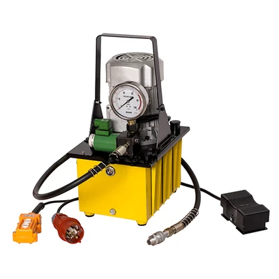 Нагнетание и слив масла из рабочей полости гидравлического цилиндра осуществляется с помощью двухсторонней педали подключенной к электромагнитному распределителю. Педаль при необходимости можно заменить на кнопочный тельферный пульт. При выборе маслостанции обратите внимание, что объём масляного бака маслостанции должен превышать рабочий объём подключенного оборудования минимум на 20-30% для предотвращения попадания воздуха в гидравлическую систему и нагрева масла при работе.