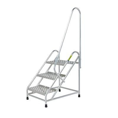 Устойчивая и надежная конструкция для проведения любых работ на небольших высотах. Комфортная верхняя площадка размером – 600 х 400 мм. Ступени глубиной 250 мм из рифлёного листового алюминия. Для безопасного подъема ступени имеют загнутую внутреннюю кромку, которая предотвращает проскальзывание ноги внутрь. Дополнительное боковое ограждение предотвращает соскальзывание ноги вбок. Ножки подставки укомплектованы резиновыми противоскользящими башмаками. Легкая и прочная сварная конструкция. Один поручень для безопасного подъема и спуска. Поручень можно переставлять на любую сторону.