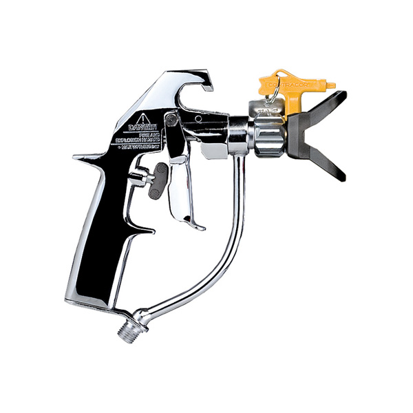 По техническим характеристикам и области применения подобен окрасочному пистолету Graco-Silver gun. Короткий ход краски, легко промывается, хорошо лежит в руке, захват на 2 пальца. Наконечник затвора и седло диффузора пистолета изготовлены из карбида вольфрама.