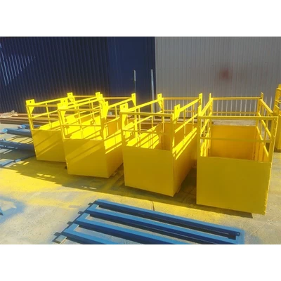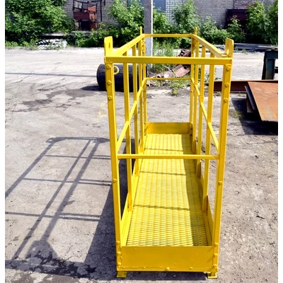Оборудование для подъема людей. Требования безопасности» Для удобства транспортировки, площадка имеет разборную конструкцию и специальные места для подъема люльки погрузчиком. Фасадные люльки изготавливаются из профильных металлических труб. Каждая площадка после производства подвергается испытаниям с приложением нагрузки, превышающей нормативную на 100%.