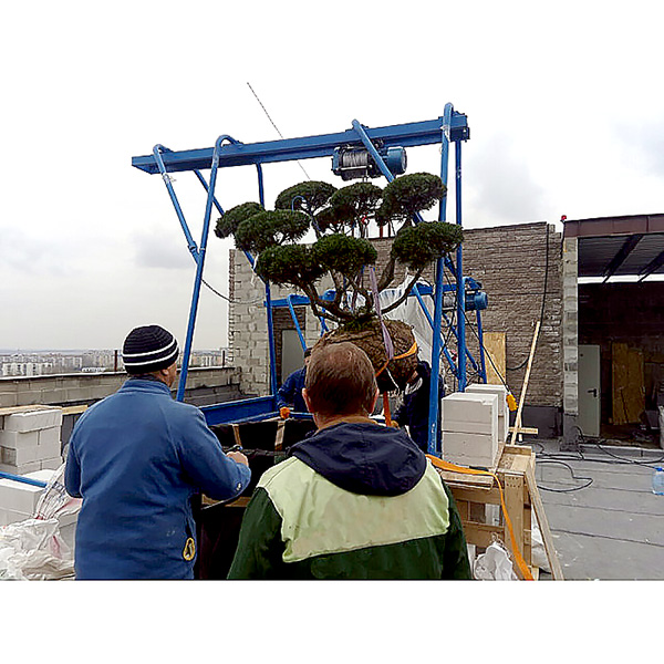 Легкая и разборная конструкция позволяет поднять подъемник на крышу используя силу двух человек. В кране используется лебедка с повышенной пыле и влагостойкостью, что позволяет использовать кран на крыше здания в нормальных атмосферных условиях.
