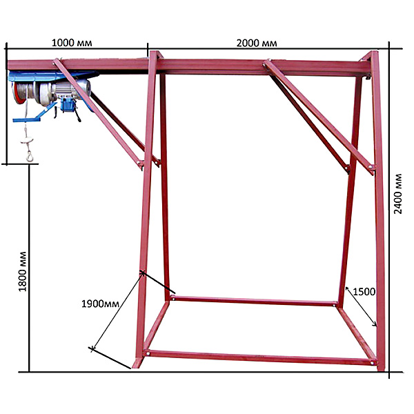 Подъёмник строительный (кран в окно) КВ 500 / 100 УС (увеличенная стрела 1300мм)- разборная и быстро монтируемая конструкция