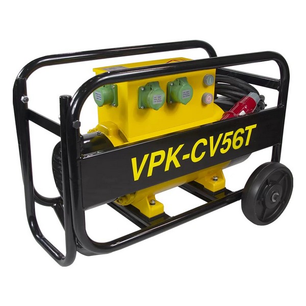 Преобразователь частоты ВПК CV56T является представителем нового поколения преобразователей частоты серии ВПК. Выполняет роль понижающего трансформатора до 48 В и повышает частоту тока с 50 Гц до 200 Гц ,что позволяет вибратору получить высокую частоту колебаний и как следствие огромную центробежную силу.