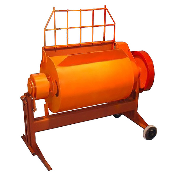 Благодаря весу стальных конструкций рамы и барабана весь агрегат достаточно устойчив. Через продольную ось барабанного цилиндра проходит цельный литой смесительный вал, закрепленный на подшипниках №109. Для вращения его используется мощный трёхфазный электродвигатель на 2,2 кВт, с напряжением питания 380В. Вращающий момент от двигателя передается клиноременной передачей на малый вал-шестерню, а через неё непосредственно на смесительный вал.