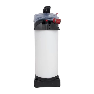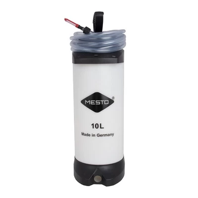 Представляет собой корпус выполненный из ударостойкого пластика. Объем наполнения 10 л (при общем объеме 12,5 л), обеспечивает максимальное давление 3 бар. Встроенная воронка с крышкой. Датчик с предохранительным клапаном. Разъем ? со встроенным фильтром от загрязнений. Для герметизации стыков применены прокладки из материала NBR (бутадиен-нитрильный каучук), известного своей износостойкостью. Стабильная гидронетическая нога позволит использовать насос на неровных поверхностях. Шланг длиной 2,5 м прозрачный, обеспечивает визуальный контроль подачи воды.
