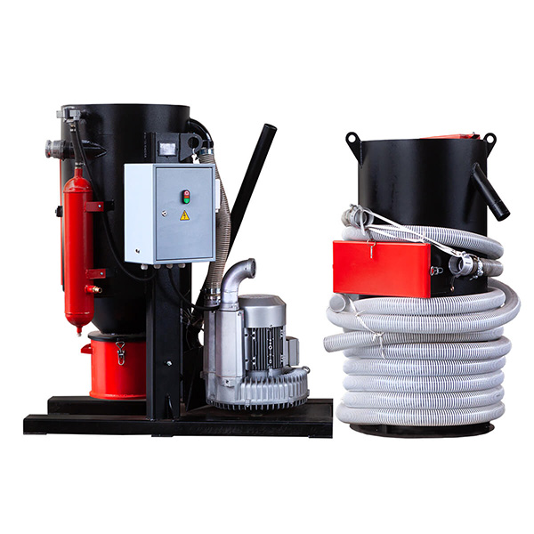Система сбора и рекуперации абразива состоит из передвижного всасывающего комплекса, ёмкости для сбора и рекуперации абразива, комплекта рукавов и кабелей, сменных насадок для сбора различных абразивов и сыпучих материалов.