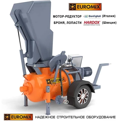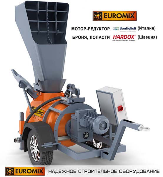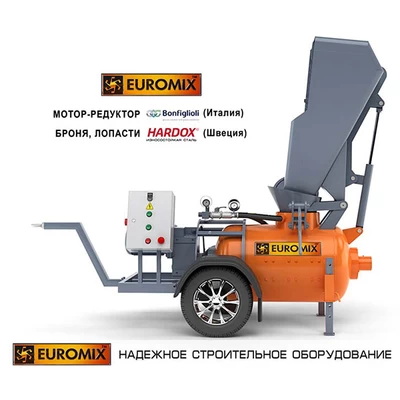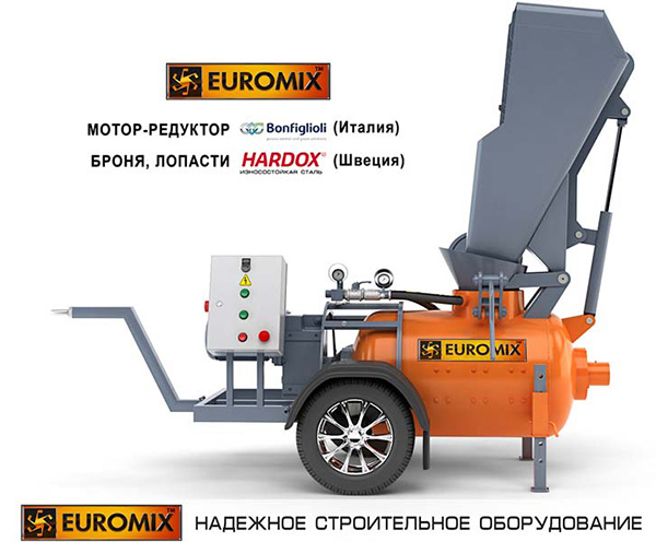Возможность приготовления строительных растворов непосредственно на строительной площадке, подача строительных растворов посредством избыточного давления, собственная рама на колесном ходу - делает смесители-пневмонагнетатели серии "EUROMIX" совершенно незаменимыми при проведении бетонных работ.