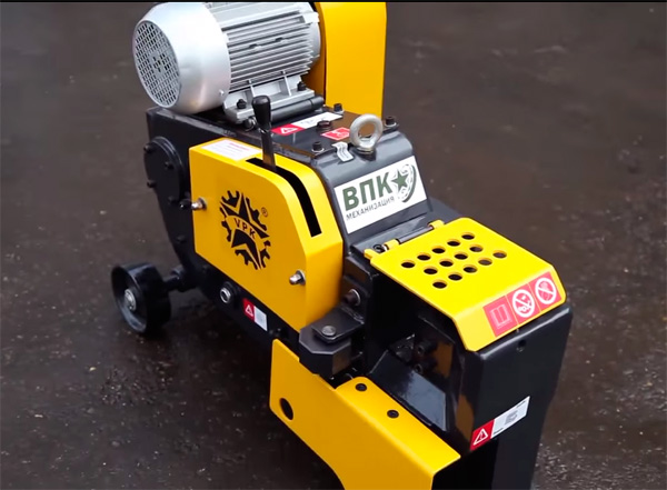 На станке ВПК Р-45 двигатель через маховик и редуктор передает вращение на кулисный механизм. Таким образом реализуется возвратно-поступательное движение ножа, и, соответственно, резка арматуры.