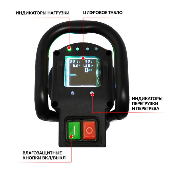Так же машина оснащена световыми индикаторами сообщающими о перегреве / нагрузке / перегрузке.