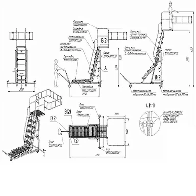 - Выдвижная часть лестницы имеет рабочую платформу с перилами по бокам, мм - 670 х 670