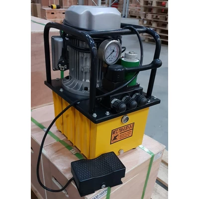 Маслостанция так же оснащена заполненным глицерином манометром со шкалой до 1000 бар. Маслостанция работает на гидравлическом масле "ВМГЗ" или масле с аналогичными характеристиками. Переключение между инструментами осуществляется ручным распределителем с рукояткой. Нагнетание и слив масла из рабочей полости гидравлического цилиндра осуществляется с помощью двухсторонней педали подключенной к электромагнитному распределителю. Педаль при необходимости можно заменить на кнопочный тельферный пульт.