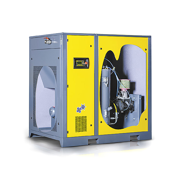 Изменение потребности в сжатом воздухе влечёт за собой изменение давления в сети сжатого воздуха предприятия. Установленный в компрессоре датчик давления отрабатывает изменение давления в сети соответствующим сигналом в контроллер компрессора. Контроллер с помощью частотного преобразователя устанавливает скорость вращения электродвигателя, которая соответствует требуемой производительности компрессора. Таким образом давление в сети сжатого воздуха предприятия поддерживается на постоянном значении.