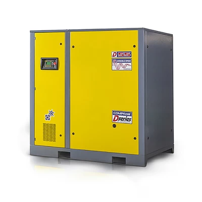 Количество сжатого воздуха, производимого компрессором, регулируется в зависимости от потребления путём регулировки скорости вращения двигателя и винтового блока.