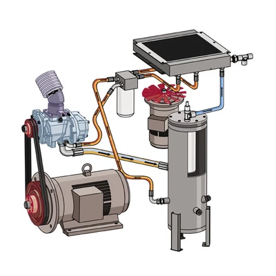 Изменение потребности в сжатом воздухе влечёт за собой изменение давления в сети сжатого воздуха предприятия. Установленный в компрессоре датчик давления отрабатывает изменение давления в сети соответствующим сигналом в контроллер компрессора. Контроллер с помощью частотного преобразователя устанавливает скорость вращения электродвигателя, которая соответствует требуемой производительности компрессора. Таким образом давление в сети сжатого воздуха предприятия поддерживается на постоянном значении.