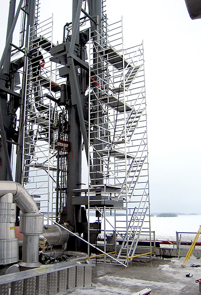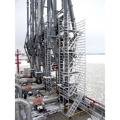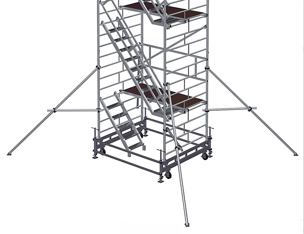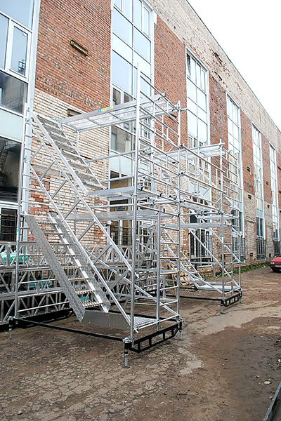 Вышка модульная алюминиевая Megal ВМА 1400Л -  комфортный подъем по наклонным лестничным маршам с удобными рифлеными ступенями